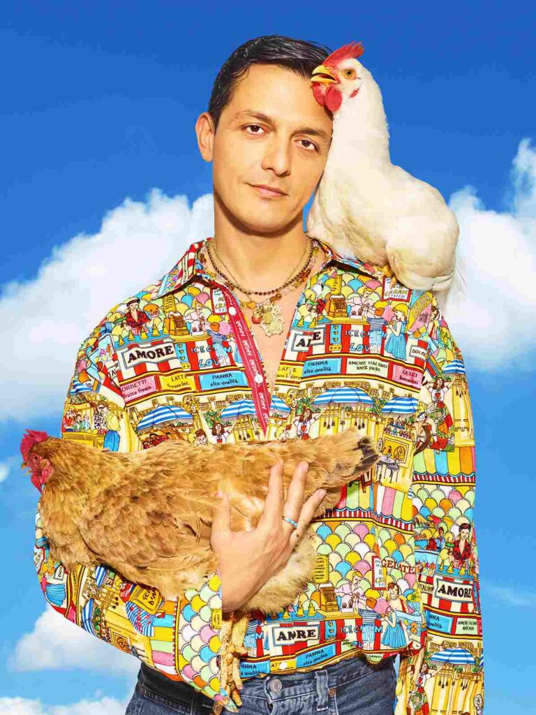 Nuova icona di stagione, la “gallina alla moda”, segna con leggerezza un guardaroba che non ha paura di sorridere. E come sigillo, lo slogan “lunga vita alla signora” appare su t-shirt stampate e ricamate, dichiarazione di fedeltà a una femminilità intelligente, inclusiva e senza tempo. La collezione prende vita attraverso una scelta di tessuti ricercata e responsabile: twill e jersey in viscosa, cotoni organici, duchesse da filato riciclato, denim e rasi in misto seta. La palette colore è ampia, con grafiche che diventano quadri narrativi popolati da feste in piazza, pranzi sul mare e gelaterie d’altri tempi, restituendo un affresco di gioia collettiva e contemporaneità. Non è una collezione costruita su effetti speciali, ma sul desiderio di restituire leggerezza e gioia. Come il gelato in estate, questi abiti promettono stile ma anche memoria, ironia, libertà. E soprattutto amore. Alessandro Enriquez affida a Pierpaolo Ferrari il compito di offrire una visione sognante della collezione, reinterpretandone lo spirito in chiave pop.