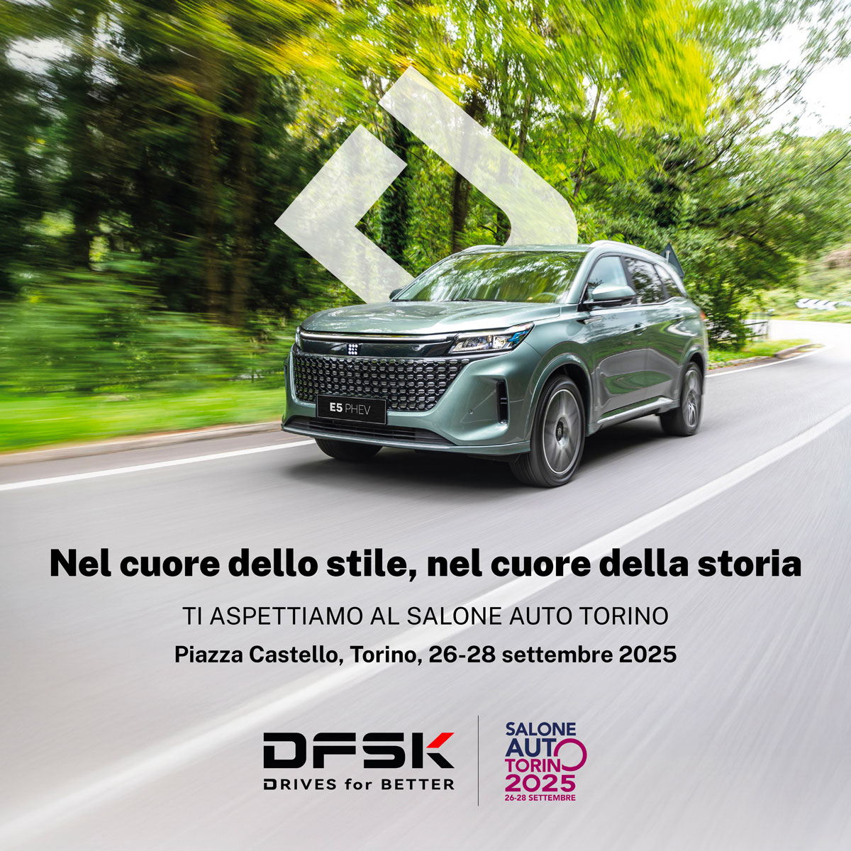 DFSK, brand distribuito in Italia da China Car Company (membro UNRAE), partecipa al Salone Auto Torino 2025, in programma dal 26 al 28 settembre. In Piazza Castello saranno esposte due vetture: la nuova Glory 500 Turbo, presto disponibile sul mercato, e il SUV plug-in E5 PLUS PHEV a 7 posti, entrambi rappresentativi della gamma DFSK. Lo stand […]