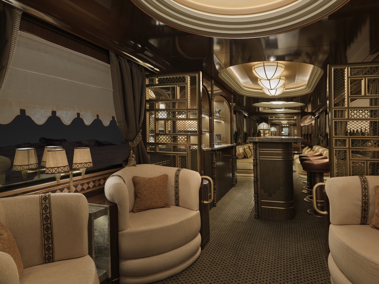 Il treno, con 33 suite esclusive, ristoranti gourmet e lounge Majlis, offrirà itinerari di una o due notti attraverso i paesaggi più affascinanti del Regno, con partenza prevista alla fine del 2026.