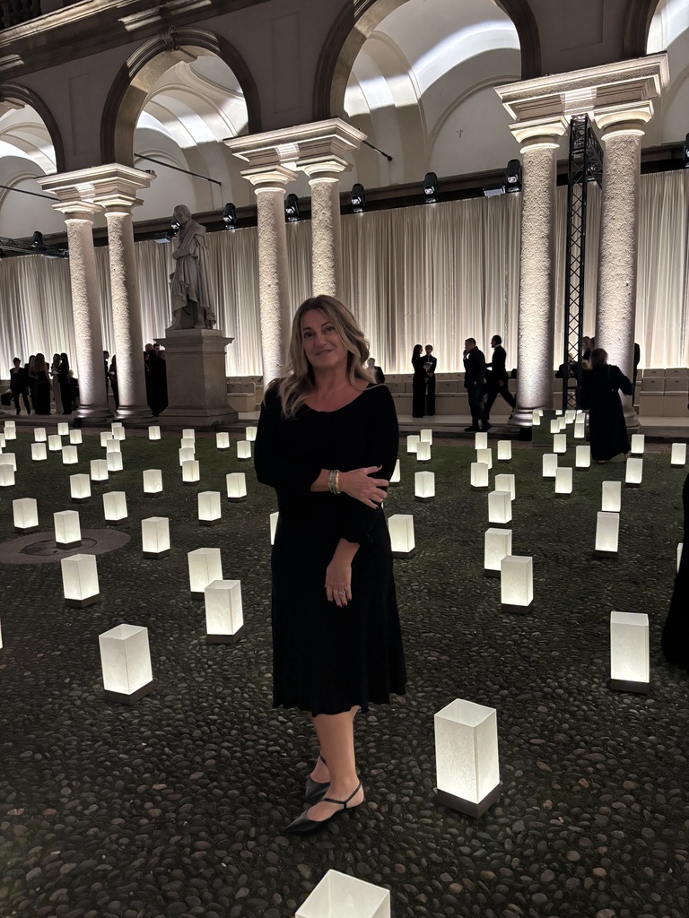 Permettetemi una piccola parentesi sui Chi è Chi Awards, perchè ogni vincitore mi ha commosso sotto tanti aspetti. Carolina e Camilla Cucinelli che si passavano il microfono con l’enfasi di due sorelle, emozionate nel vedere il padre e la madre ascoltarle dal parterre, un po’ come il giorno della laurea. Paolo Zegna, elegante e generoso nel farmi i complimenti, e poi ci siamo messi a parlare del cammino dell’Oasi Zegna che con il foliage è stupendo. Francesco Vezzoli, l’artista famoso nel mondo che è stato il più timido e delicato, la sua presenza è stata un pilastro di questa 25° edizione. Silvia Damiani che conosco da così tanti anni che è bastato uno sguardo per capirne l’emozione. Javier Goyeneche che ha letto il discorso in italiano con quell’accento spagnolo che lo ha reso appassionato e gentile, come le sue battaglie per la sostenibilità (Maria Elena Viola “feliciona” di averlo premiato!). Gaelle Drevet, il volto nuovo, che si è presentata a Milano per la prima volta, pronta ad aprire un negozio The Frankie Shop nel quadrilatero. Olga Campofreda, dolce e meravigliosa, cultura e buone maniere che in pochi sanno esprimere. Franco e Lucia Mantero che hanno espresso tutti gli attributi dei comaschi: forte dedizione al lavoro, senso di appartenenza al territorio e riservatezza. Anna Dello Russo che per una volta è rimasta sorpresa da qualcosa che forse non aveva mai visto, così felice di ritirare un premio tutto per lei che mi ha detto che è a mia disposizione … peccato che non possa nemmeno chiederle di prestarmi un vestito che con la taglia proprio non ci siamo! E ancora Laura Asnaghi (che aveva gli occhi lucidi) Eva Desiderio ( emozionata e sorridente), Bruna Rossi ( che aveva tutta la redazione ad applaudirla con un tifo da stadio) Ariela Goggi ( che non voleva venire ma che mi ha detto “grazie per avermi convinta”). Poi è arrivato il Premio Barbara Vitti, ritirato da Anoushka Borghesi, io ho precisato che era stata informata del premio a luglio, perchè non volevo che sembrasse assegnato dopo la morte del Signor Armani, e mi ha fatto veramente piacere sentirle dire “Avevo chiesto al Signor Armani se potevo venire a ritirare il premio e lui mi aveva detto di si ” , un gesto carico di significato, non solo un atto di rispetto ma un segnale raro di umiltà in un mondo dove spesso prevalgono ego ed individualismo. E’ come se avesse voluto riconoscere apertamente che la sua storia professionale è intrecciata con quella di Armani e che il merito di un riconoscimento personale non può prescindere dal maestro che l’ha formata. Un gesto che parla di gratitudine, appartenenza e misura: tre valori che andrebbero ricordati più spesso nel nostro settore.