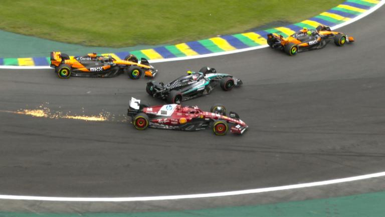 Ferrari che vince, Ferrari che perde. Nella domenica del GP di San Paolo (e non del Brasile perché il nome è depositato dalla federazione brasiliana, mentre questa gara è organizzata dalla prefettura di San Paolo) le due facce della medaglia del cavallino sono struggenti. In Bahrain, a 6 mila km da Maranello, la Ferrari col terzo e quarto posto finale alle spalle della Toyota, ottiene un titolo mondiale sport che mancava dal 1972 e vince con Giovinazzi, Pierguidi e Calado pure il titolo piloti, con Giovinazzi che rientra di corsa in Puglia per assistere la moglie Antonella, che ha dato alla luce la piccola Ginevra. In Brasile, a 12 mila km da Maranello, le due Rosse di Leclerc ed Hamilton finiscono fuori nei primi giri di gara: il monegasco coinvolto in una toccata multipla innescata da Piastri, autore di una manovra da kamikaze alla prima curva in cui ha centrato prima Antonelli e poi Leclerc, mentre Hamilton dopo essere stato spinto fuori alla prima curva e finito ultimo, nel tentativo di recuperare finiva addosso a Colapinto: musetto rotto, altra sosta ai box e pure 5 secondi di penalità per aver causato l’incidente.