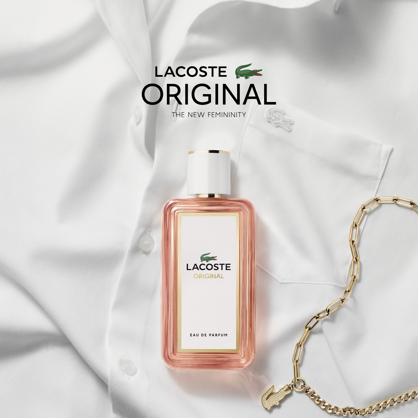 “Per noi Lacoste è un marchio risolutamente moderno, che ha saputo padroneggiare l’arte di coniugare chic e comfort, sempre con un tocco audace. È proprio questa energia che abbiamo voluto catturare con Lacoste Original Pour Femme, un profumo ultra contemporaneo che riflette la donna Lacoste. Abbiamo scelto di lavorare con la vaniglia, arricchita da un bouquet floreale luminoso e solare, per dar vita a una firma olfattiva potente e radiosa.” Adriana Medina e Louise Turner