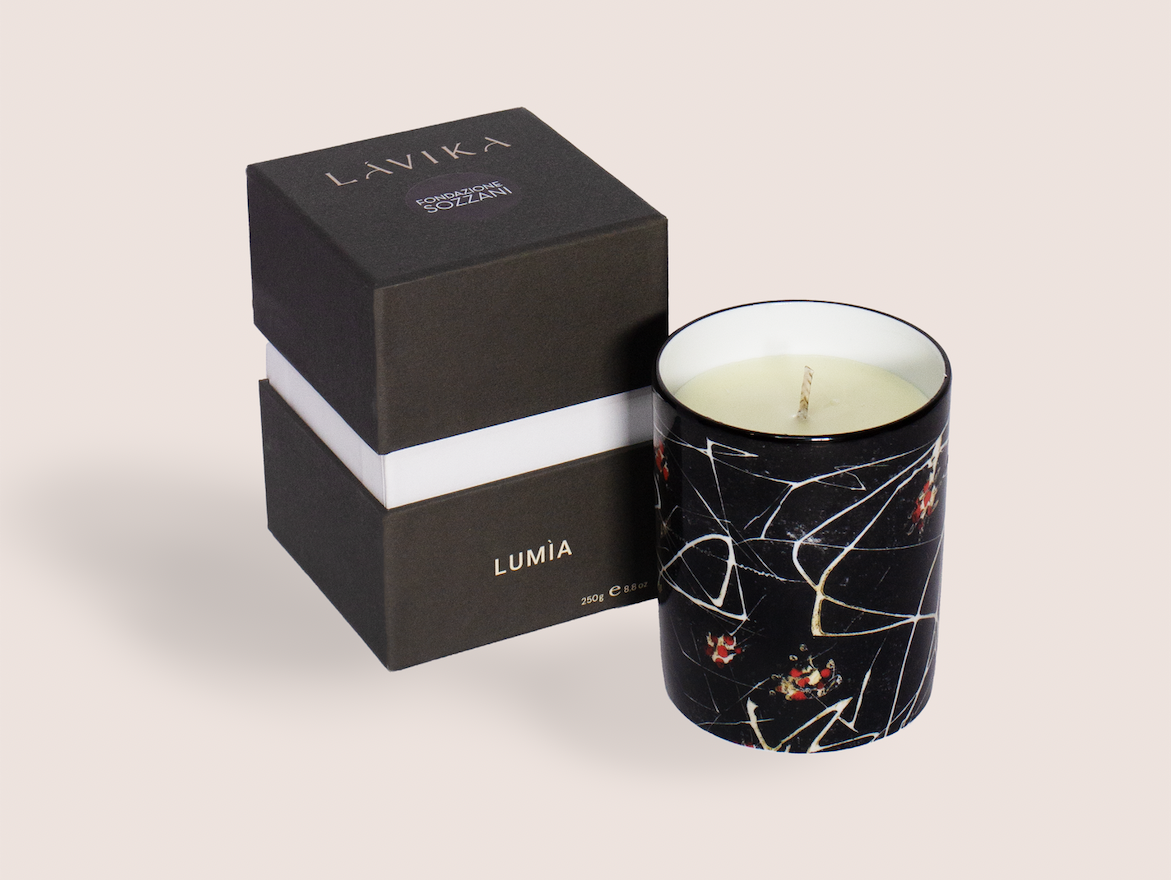 Realizzata con cera vegetale e profumata con la fragranza esclusiva “Lumìa” di Lávika – una raffinata combinazione di agrumi siciliani, arancia amara e limone – la candela si fa oggetto simbolico e solidale, capace di trasformare un gesto quotidiano in un atto di condivisione e sostegno.