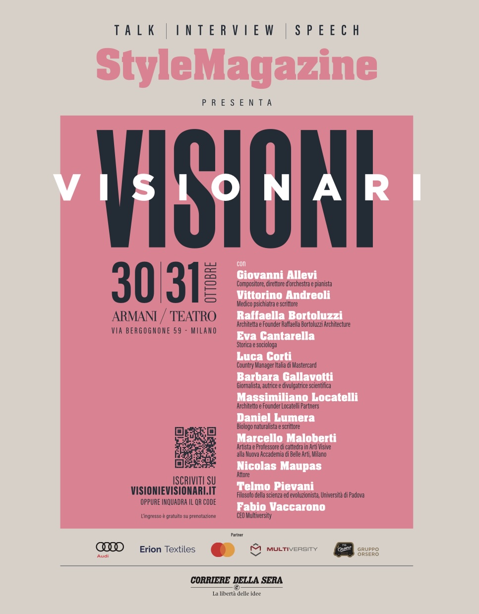 L’evento è a ingresso libero fino a esaurimento posti, con prenotazione su style.corriere.it.